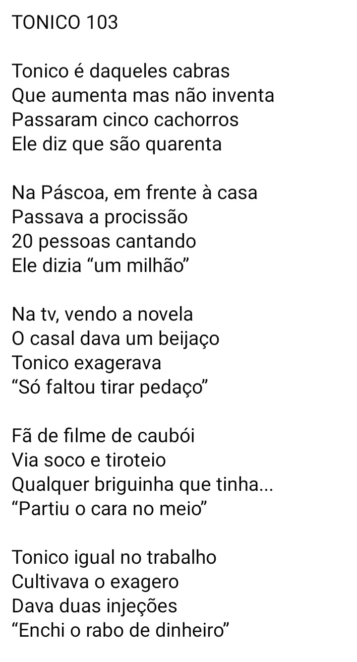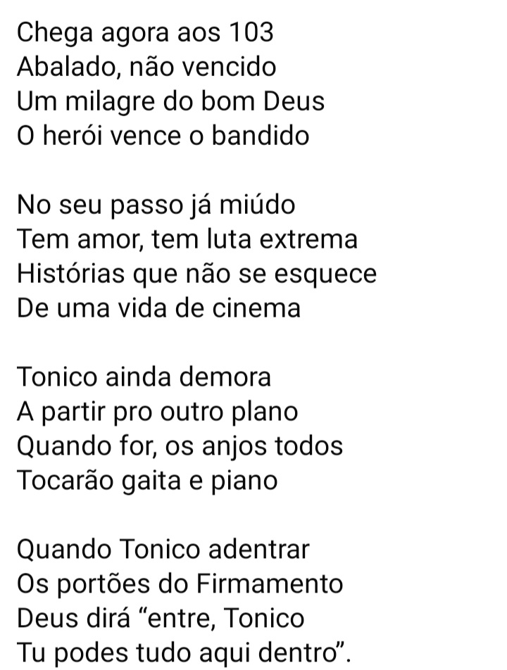 A história de seu Tonico 103 anos de idade o filho escreveu um vordrl dedicado a ele..