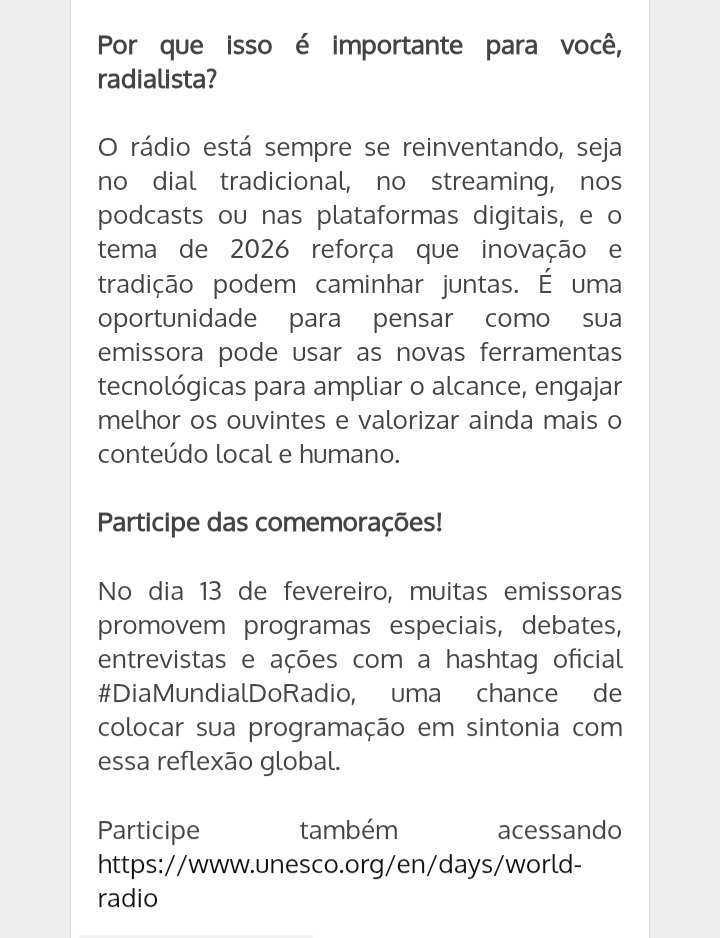 13 de Fevereiro dia Mundial do Rádio aproveite para comemorar com seus amigos e ouvinte , ouvintes converse com seu locutor preferido a emissora que você acompanha independes.